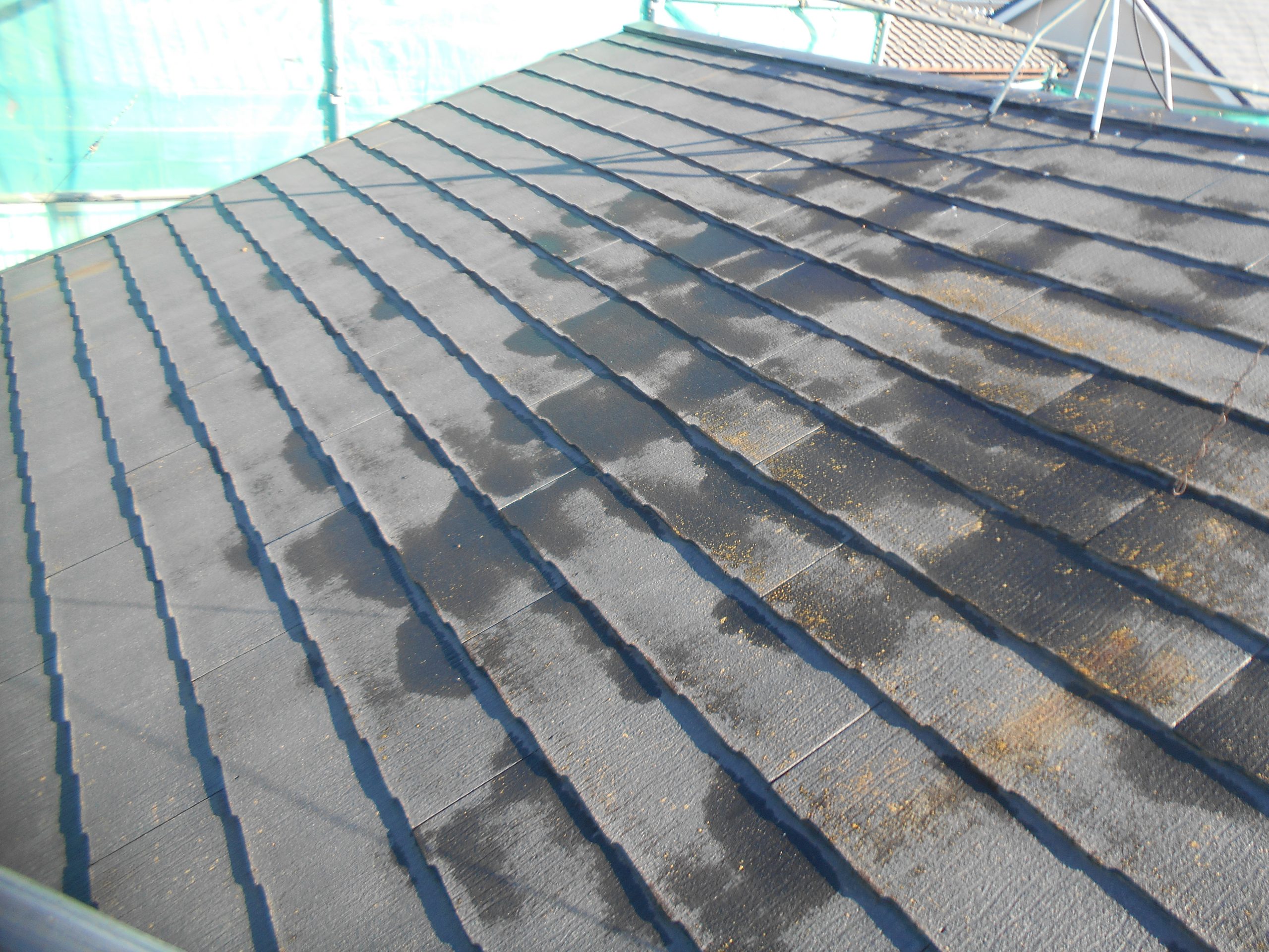 屋根と同色にする為、スレート屋根塗装塗料で色を付けていきます。