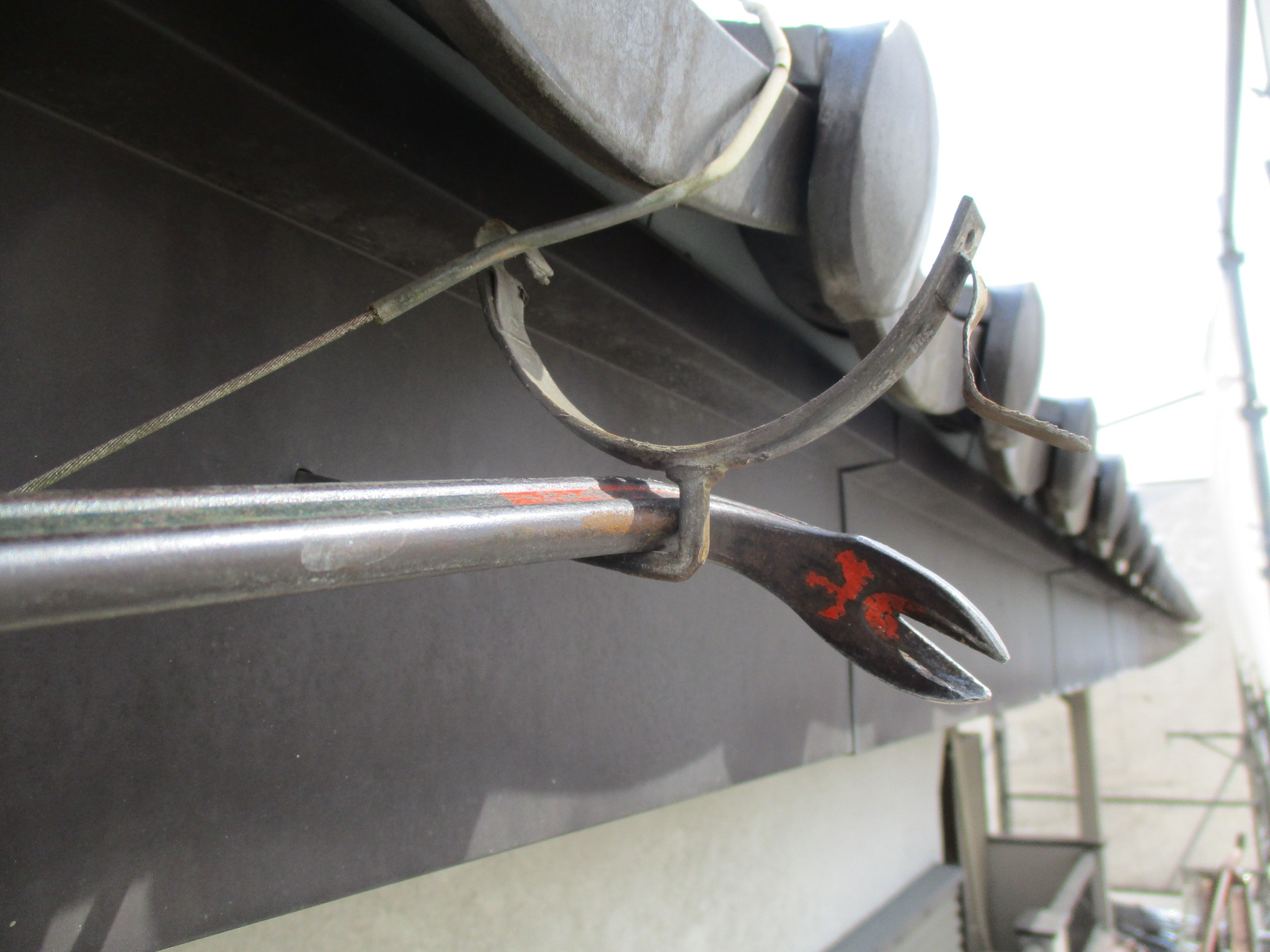 さくら市で雨樋の一部交換工事 パナソニックアイアン 施工前の雨樋の状態です 金属製の雨樋で施主様が補修を試みましたが、雨樋からの漏水は収まらず、雨樋の一部補修工事を御依頼いただきました 傷んだ雨樋の撤去中です 雨樋の外側を見ていると保護塗料が塗装してあり判りませんが、内側には錆が…