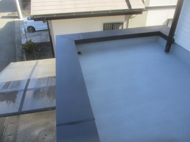 宇都宮市の雨漏り修繕工事で笠木板金を取り付けました 施工前の玄関屋根の状態です 昨日 FRPトップ塗装が終了していますので 上に毛布を敷き養生をしました これから笠木板金の取り付けを行なっていきます 新規笠木の取り付け中です 笠木板金を仮置きして位置を合わせてから 板金下地の木材…